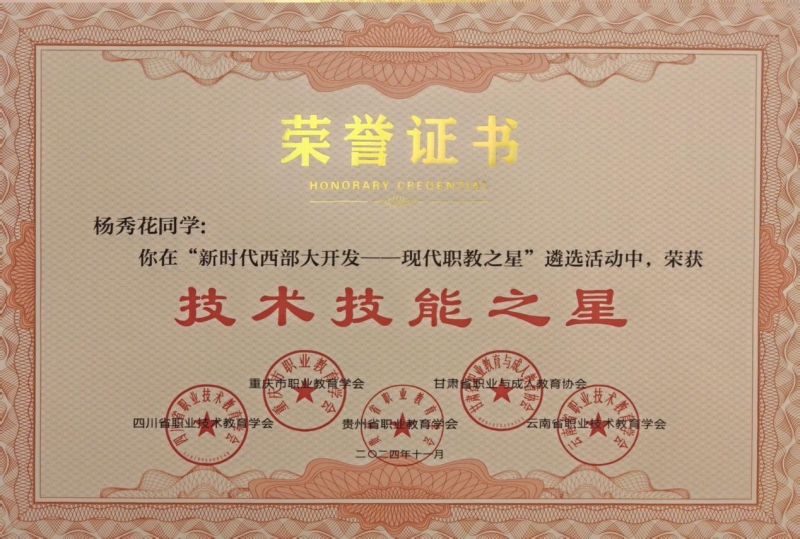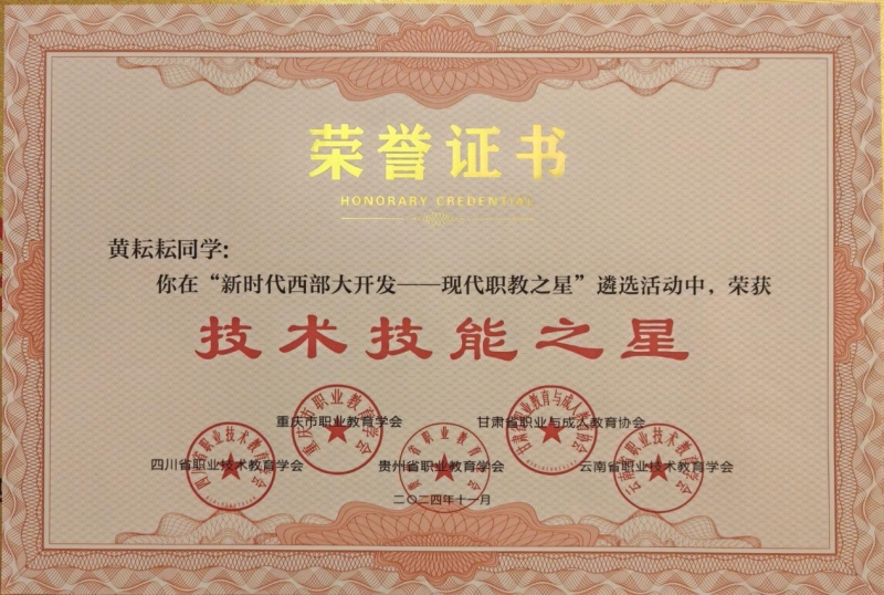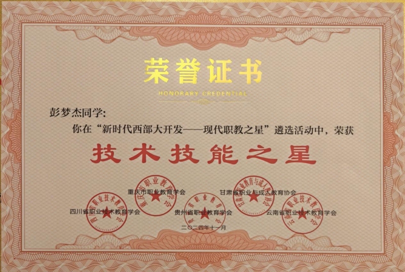 近日,由渝职教学会组织、渝甘川贵云五省市联合开展的“新时代西部大开发—现代职教之星”遴选活动结果公布,其中,学院获“创新发展之星职业院校”,推荐的贵州吉利汽车制造有限公司获“产教融合之星企业”,彭成老师获“德技双馨之星”,唐永娇、彭梦杰、杨秀花、黄耘耘4位学生获“技术技能之星”。