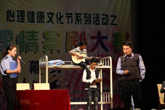 比赛过程中,各参赛队演员结合舞台场景布置和道具,把学生在日常学习、生活、人际交往等过程中遇到的心理冲突、烦恼、困惑以角色扮演的形式展现在舞台上,重现生活场景、展示心理现象。各队演绎剧目思想健康向上,立意新颖,人物形象鲜明,演员配合默契,表演逼真,心理问题表现清晰,心里冲突明显,解决心理冲突的方法、手段积极有效,整体效果良好,赢得了在场评委和观众的一致好评。通过演员的演绎和分享,让在场学生从中体验到了细微的心理变化,引起了大家的共鸣,达到了宣泄、释放压力和心理