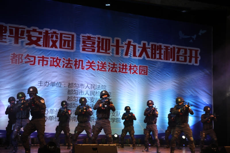 活动中,我院龙英老师与民警黄玉兰还同台演出了歌曲《阳光路上》,都匀市特警进行了格斗、战术表演。