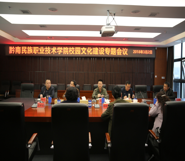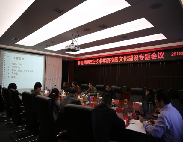 会议听取了党委宣传部部长韦永武对《校园文化建设工作方案》中重点项目介绍。党委办公室、纪检监察室、教务处、思政部、后勤处等部门负责人分别从校园标识、景观建设改造、校园绿化美化等方面展开讨论并提出意见和建议。