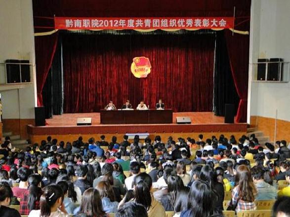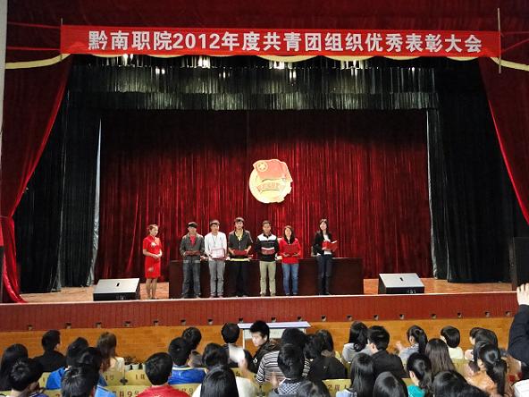 激情五月、飞扬青春,2013年4月25日,我院在南区讲学厅隆重举办“黔南职院2012年度共青团组织表彰大会”。院党委副书记吴庆颐同志出席会议并作重要讲话,学生处处长史黔匀同志、院团委书记严军、副书记沈华同志及各系学管副主任、团总支书记、辅导员出席会议,获表彰集体和个人、青年团员、学生代表共计600余人参加表彰大会。