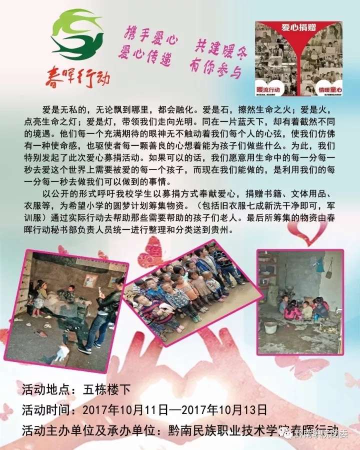 【黔南职院】春晖社团——每人都献出一份爱,世界将会更美好!