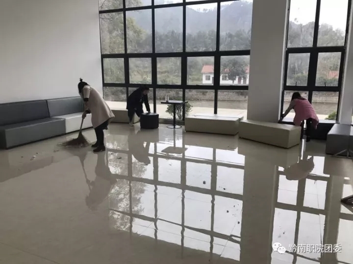 为进一步美化职院环境,为同学们营造一个舒适健康的学习环境,凝聚团委学生干部队伍活力和战斗力,增强全院学生整体素质,养成“学院是我家·环境靠大家”的思想。每周五中午放学后,院团委自行组织管干部义务打扫知行楼的一站式服务中心呼吁同学们养成良好的习惯,自觉爱护环境!