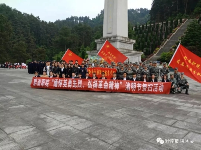 清明节来临之际,为了缅怀革命先烈,弘扬革命精神。我院2018年4月3日在院团委杨婷老师的带领下,组织了院团委、社联、应急民兵分队同学到都匀市烈士陵园扫墓。这是一次非常有意义的爱国主义教育活动,活动中我们了解到了烈士们为了中华民族独立和解放英勇献身的革命先辈,为人民作出了巨大贡献。我们瞻仰他们的丰功伟绩,祭奠他的英灵。