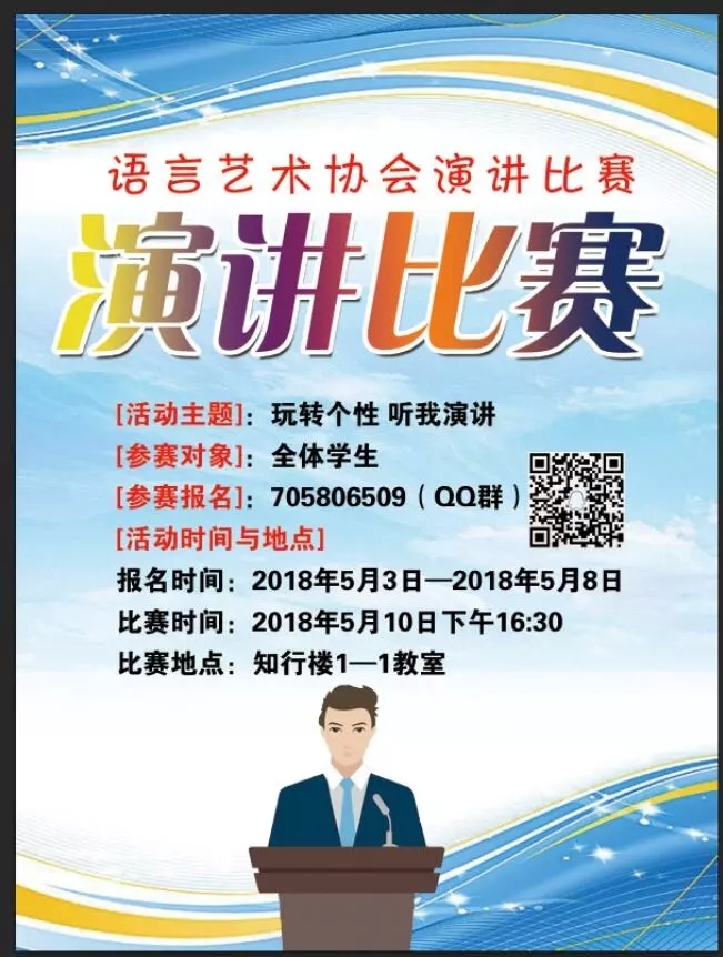 在此语言艺术协会将举办以“玩转个性,听我演说”为主题的演讲比赛,特此向全院学生发出邀请,诚挚邀请各位。