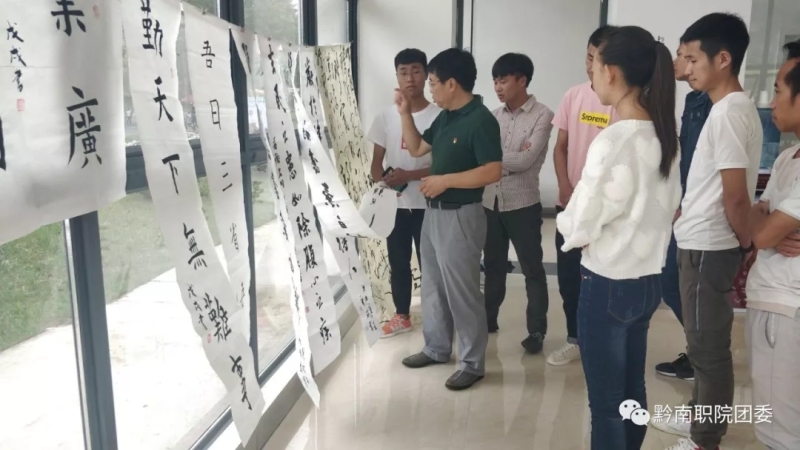 “多彩校园·闪亮青春”第十三届全省大学生校园文化活动月——全省高校师生学习《习近平用典》书法研习活动近日在我院 持续开展,来自书法协会的小伙伴们纷纷拿出自己的作品进行展示,为此还特别邀请到院党委罗俊书记与大家一起探讨学习。