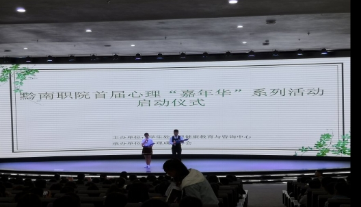 2018年10月25日下午14:00,学院知行楼学生报告厅门前热闹非凡,数百名同学聚集在这里等待着首届心理“嘉年华”活动的启动仪式。此次活动由黔南职院学生心理健康教育与咨询中心主办,院心理成长协会承办、各系协办。