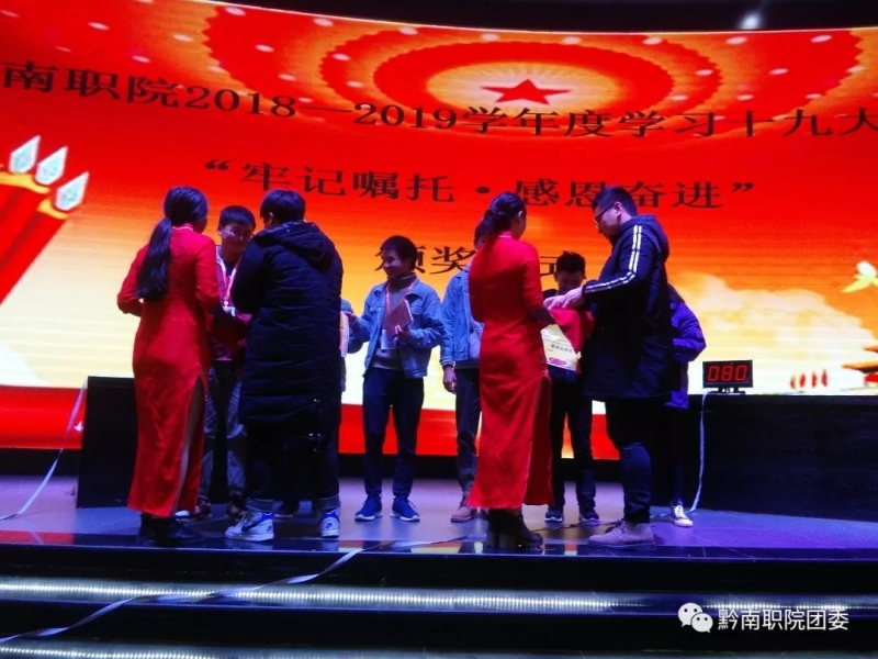 不忘初心,牢记嘱托,学习贯彻党的十九大精神,这次活动不仅是一次检阅,更是一次展示,检阅了我们学习十九大精神,展示了当代“四有”青年的风采;相信我们在学院党委的领导下,以十九大精神为指针,为建设“新黔南职院”注入青春力量!