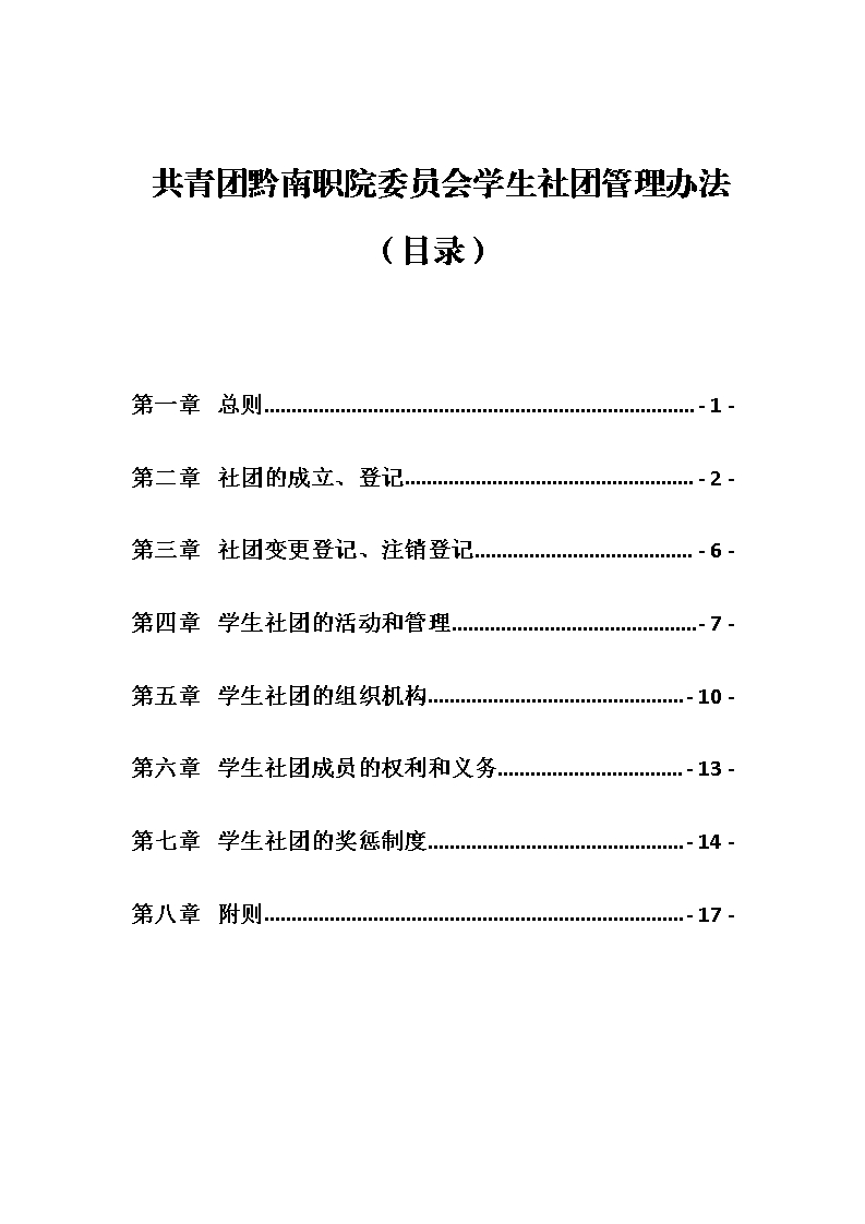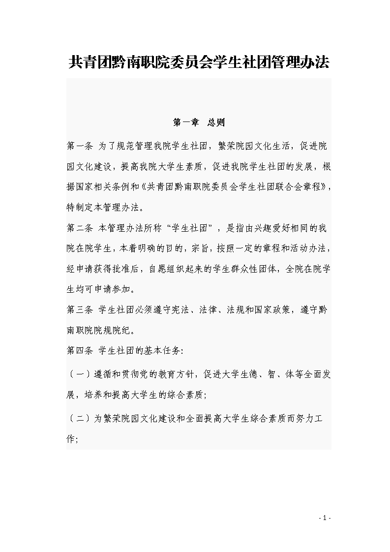 共青团黔南职院委员会学生社团管理办法