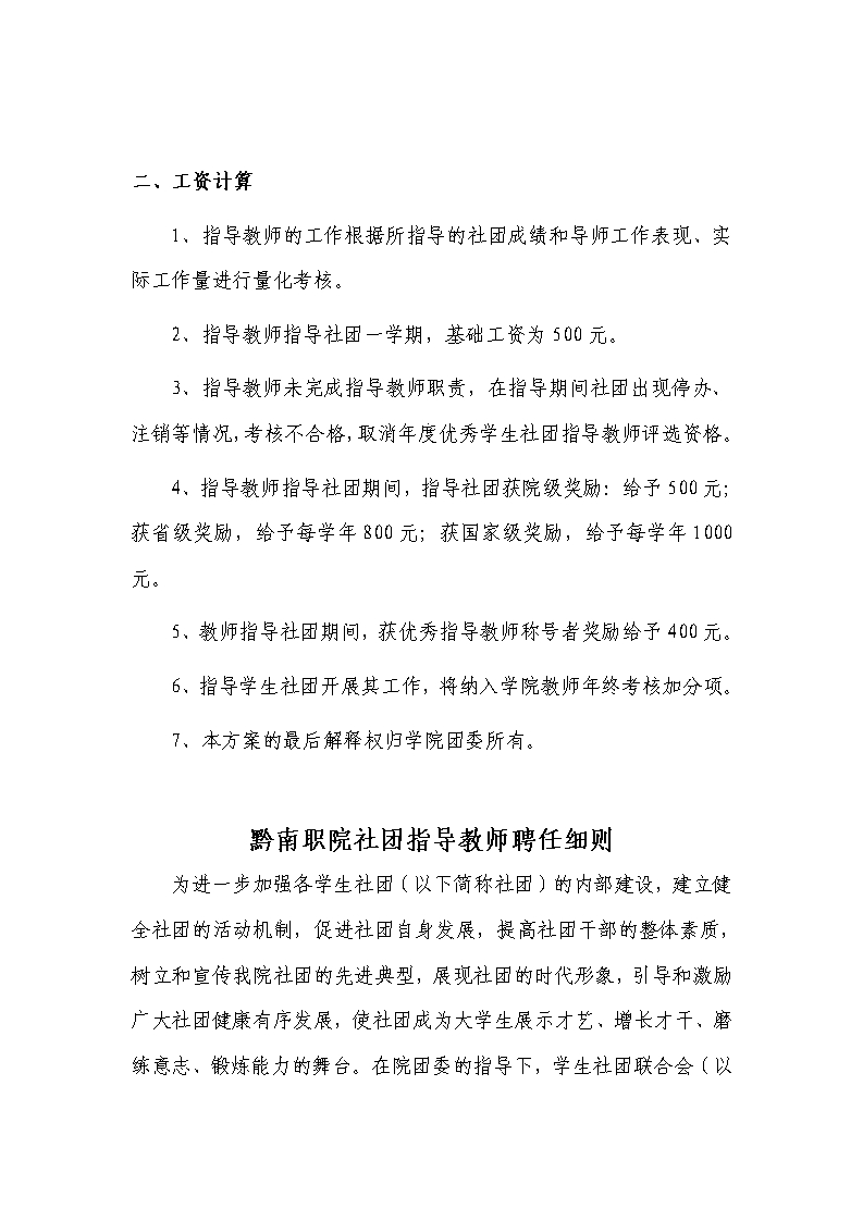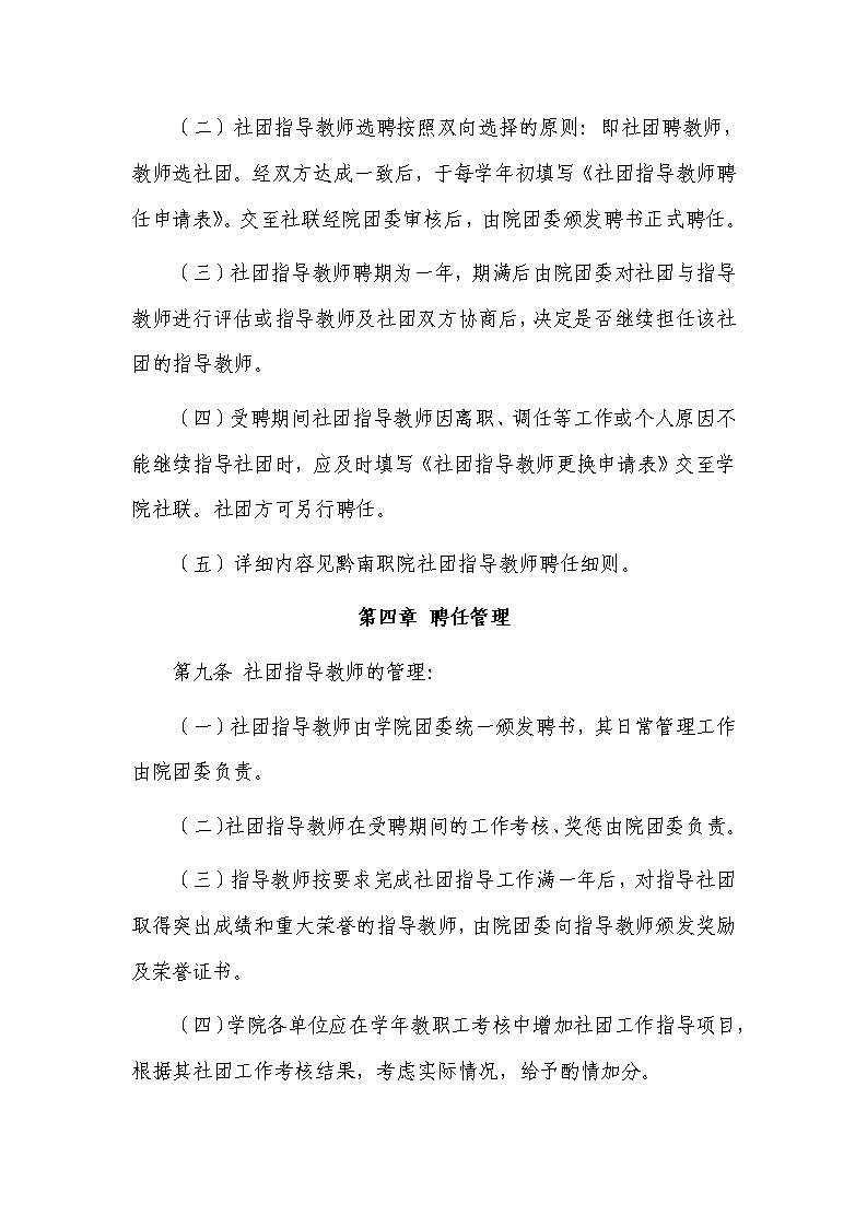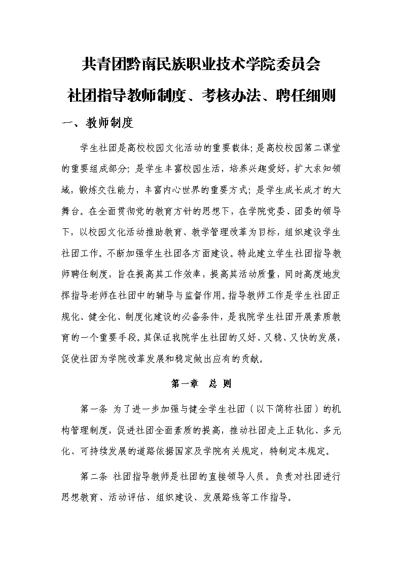 共青团黔南民族职业技术学院委员会社团指导教师制度、考核办法、聘任细则