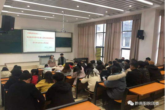 3月14日中午,由院团委赵一瑾、张超老师为这次活动召开学干外出安全工作会议,要求学干一定要注意我院学生的素质、服从带队老师的安排,展现黔南职院的良好精神风貌。学联干部们认真听会,期待着接下来活动的启动!