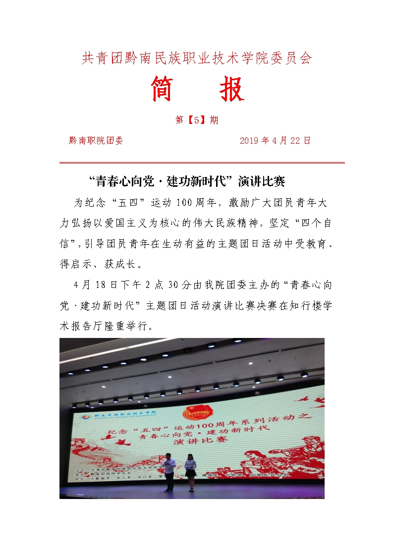 纪念五四运动100周年“青春心向党·建功新时代”演讲比赛