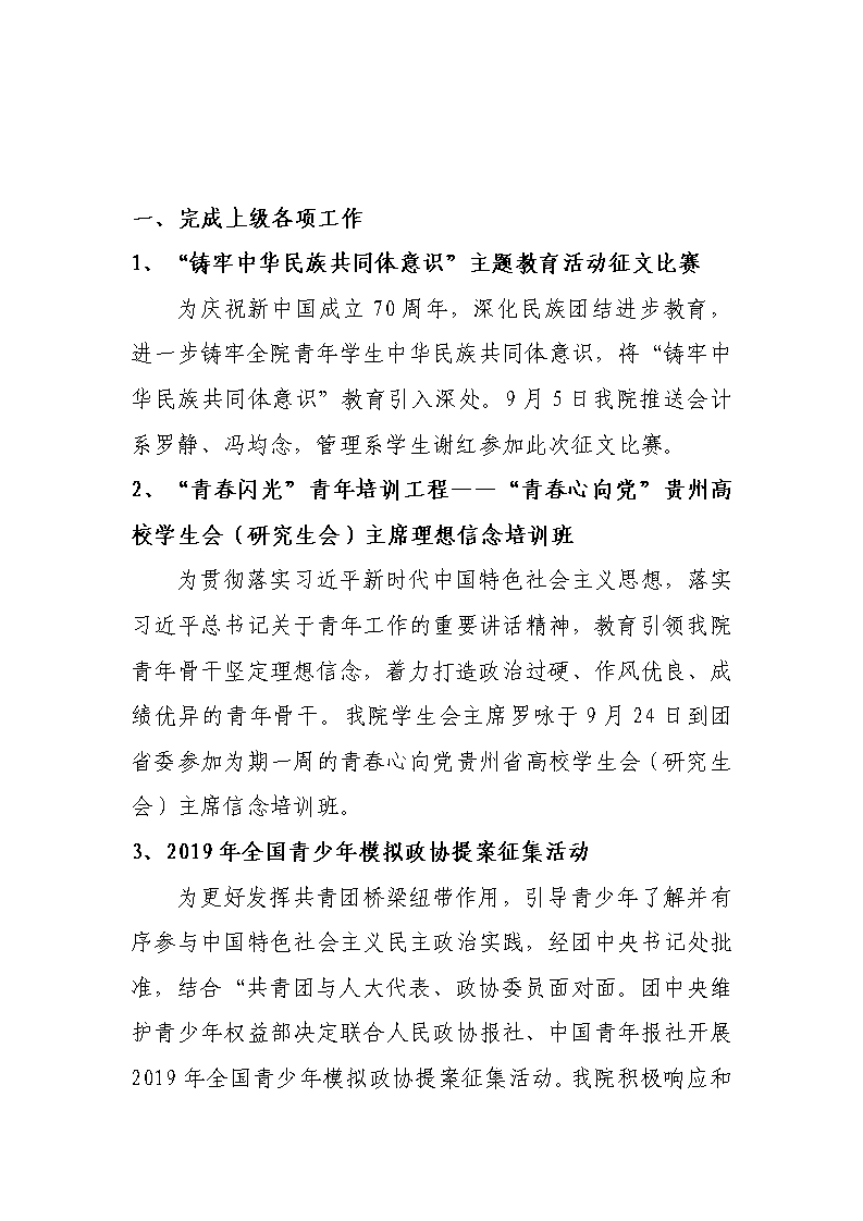 2019年8月至9月工作简报