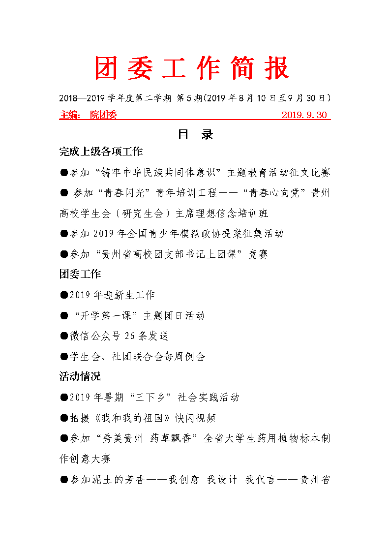 2019年10月工作简报...