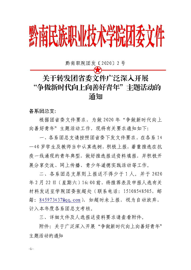 团发〔2020〕2号文件关于转发团省委文件广泛深入开展“争做新时代向上向善好青年”主题活动的通知