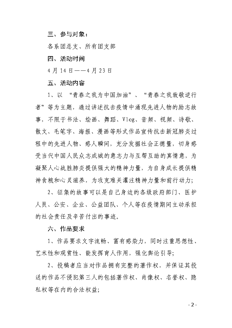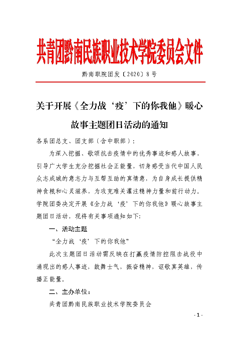 团发〔2020〕8号文件:关于开展《全力战‘疫’下的你我他》暖心故事主题团日活动的通知