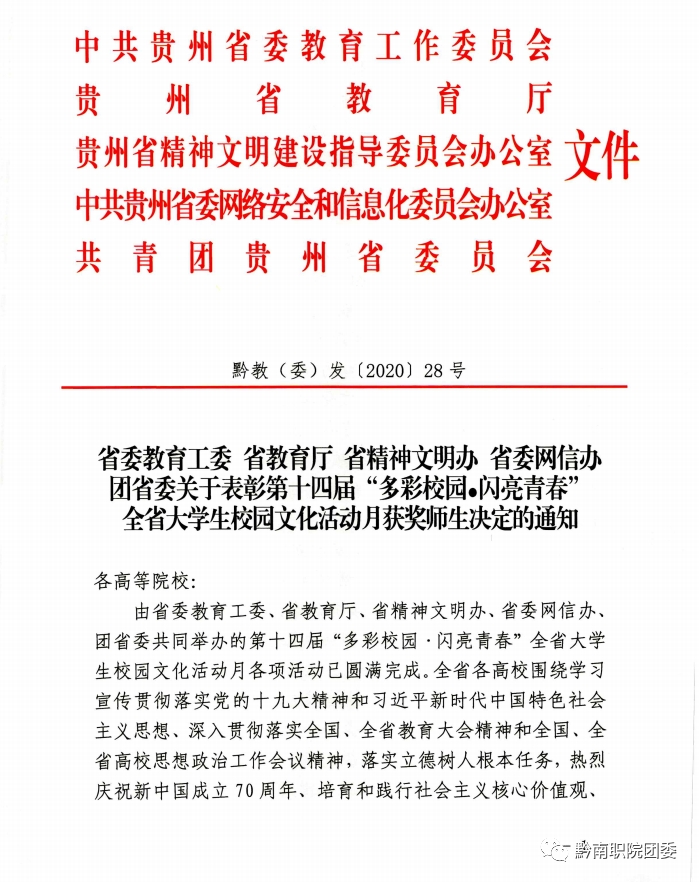 我院在第十四届“多彩校园·闪亮青春”全省大学生校园文化活动月中荣获多项荣誉