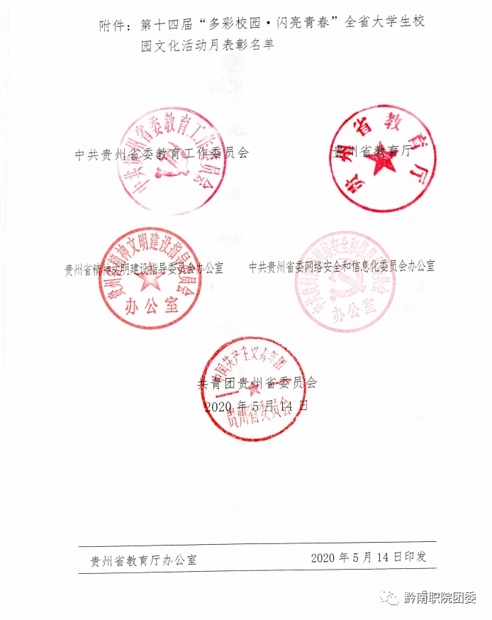 由省委教育工委、省教育厅、省精神文明办、省委网信办、团省委共同举办的第十四届“多彩校园•闪亮青春”全省大学生校园文化活动月各项活动已圆满结束。在学院党委的高度重视和正确领导下,本届校园文化活动月期间,团委大力宣传,积极组织发动各系师生参赛。我院参加的14个项目中,分别获“三等奖”6个,“铜奖”2个,“优胜奖”2个,“优秀项目奖”1个,“优秀奖”8个。