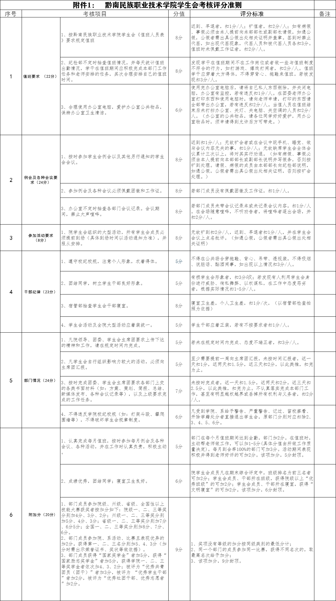 学生会考核准则表格