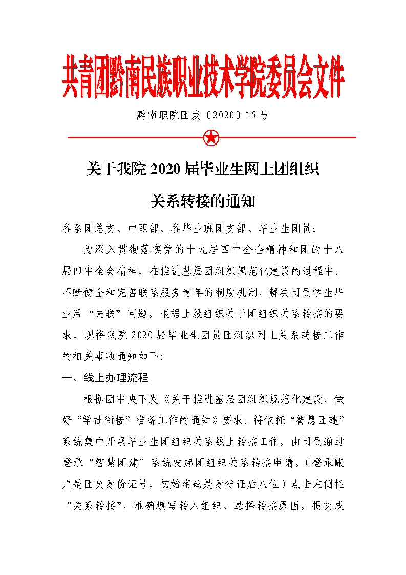 团发〔2020〕15号文件:关于开展2020届毕业生团组织关系转接的通知