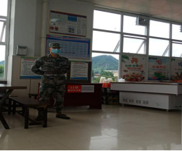 开学后在学院生活区域开展站岗执勤工作,应急分队队员都会与食堂工作人员相互配合,在每一个入口点都设有人员站岗,检查每一位前来食堂就餐同学的体温,以及是否佩戴口罩进入食堂等问题,避免疑似者混入其中,强调餐前洗手,就餐一人一桌,有序排队打饭。