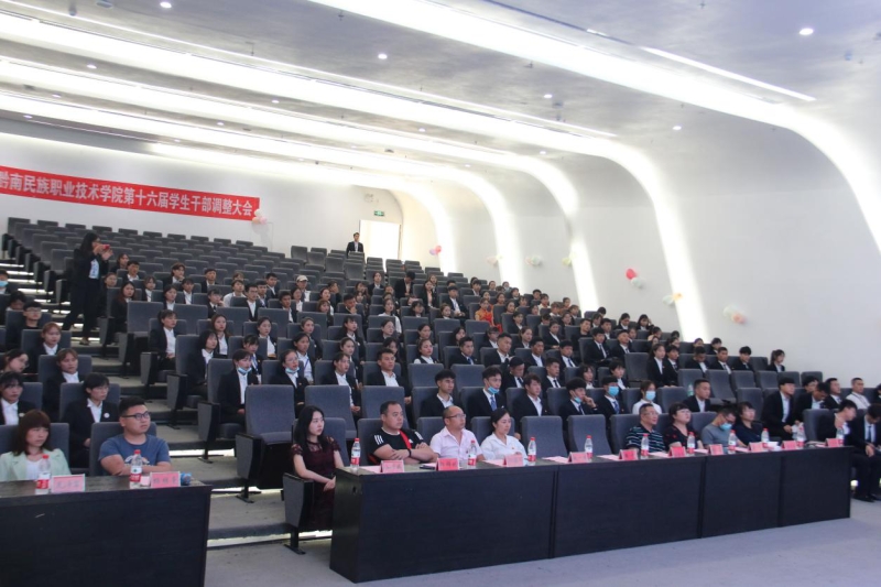 为加强我院学生会干部队伍建设,实现新老成员交替,提高院学生会的工作效率,创建一个具有团结力、凝聚力、战斗力的集体,秉着公平、公正、公开的原则,我院第十六届学生干部调整大会于2020年7月9日15:00在知行楼学术报告厅隆重举行。