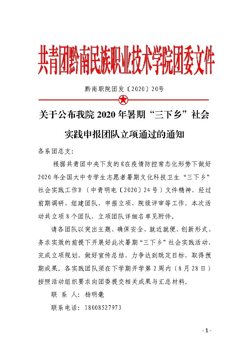 团发〔2020〕20号文件:关于公布我院2020年暑期“三下乡”社会实践申报团队立项通过的通知