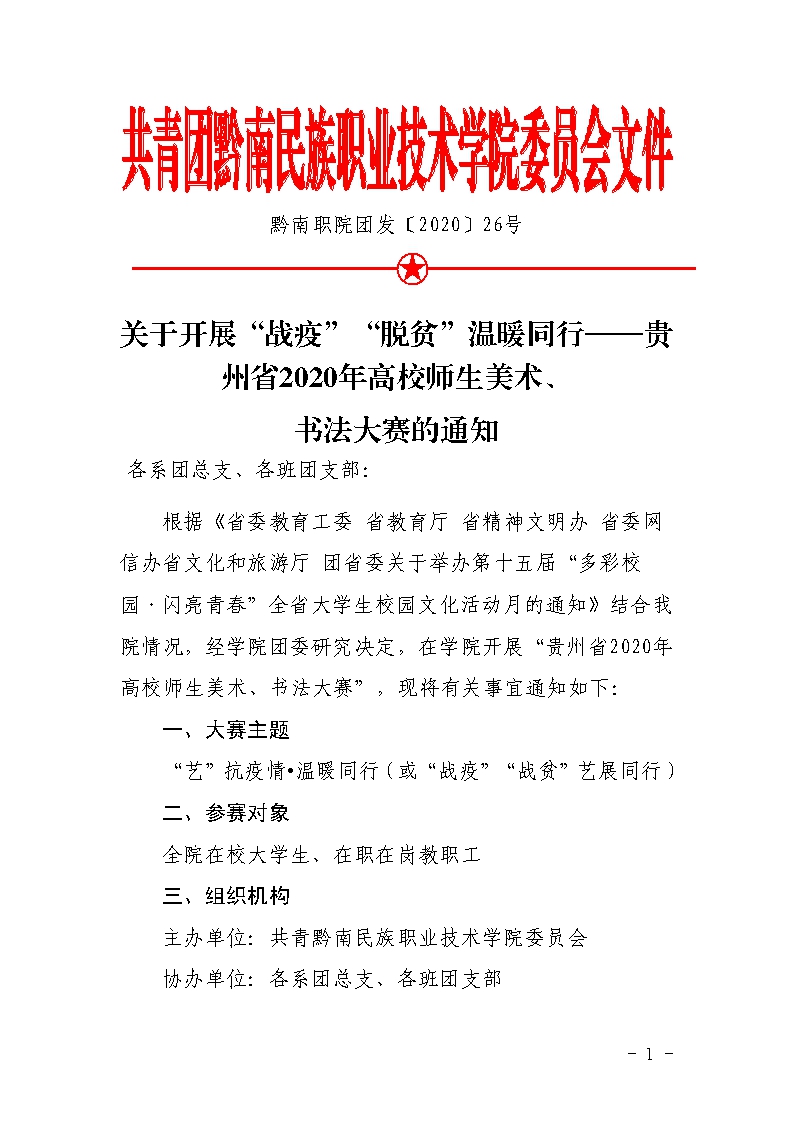 团发〔2020〕26号文件:关于举办院级书法绘画大赛的通知