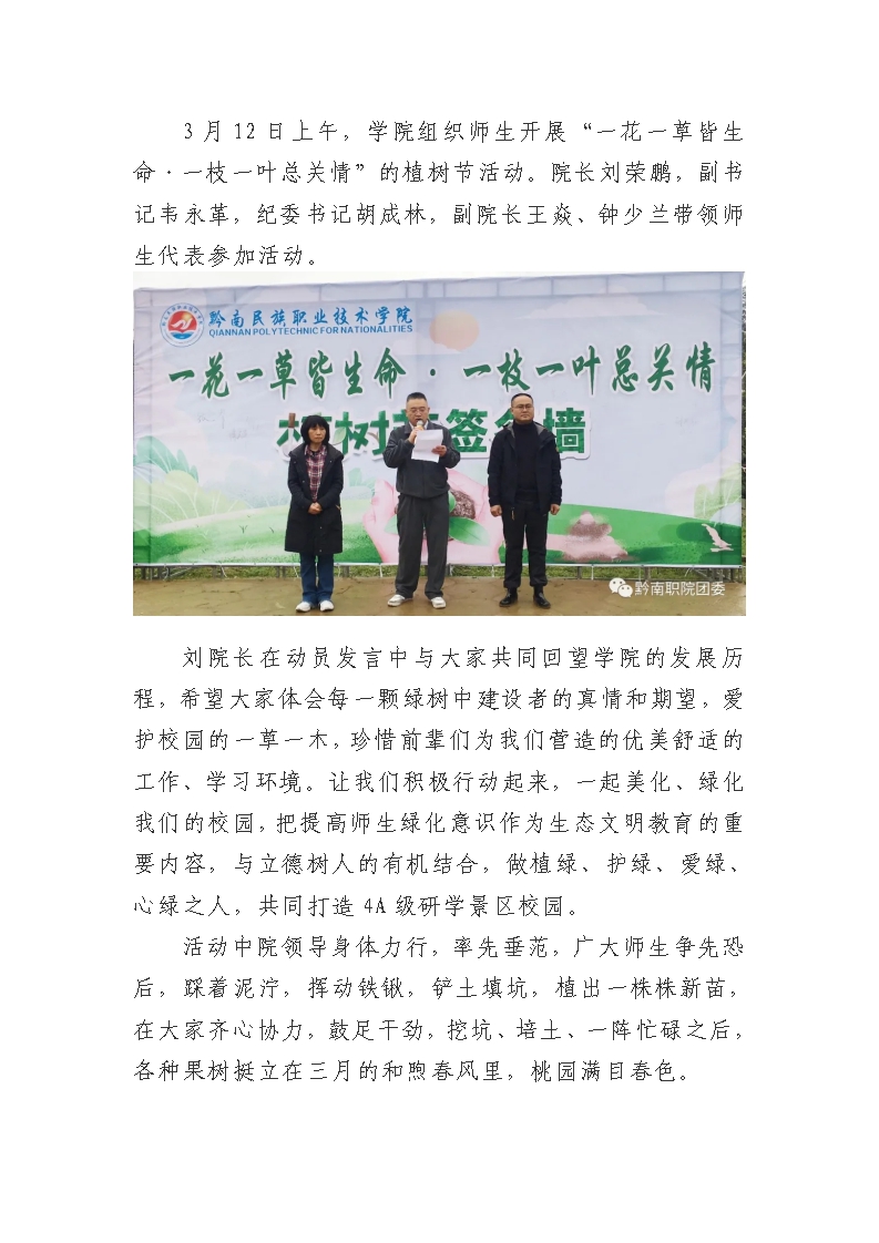 “一花一草皆生命·一枝一叶总关情”师生植树活动