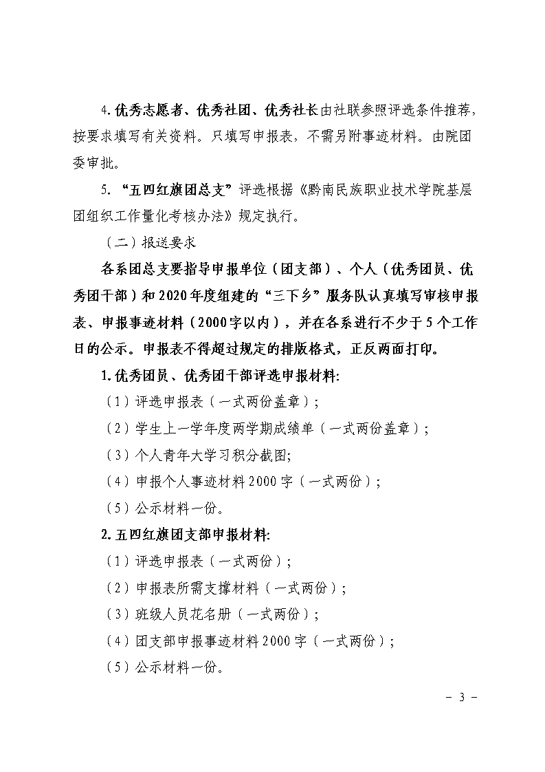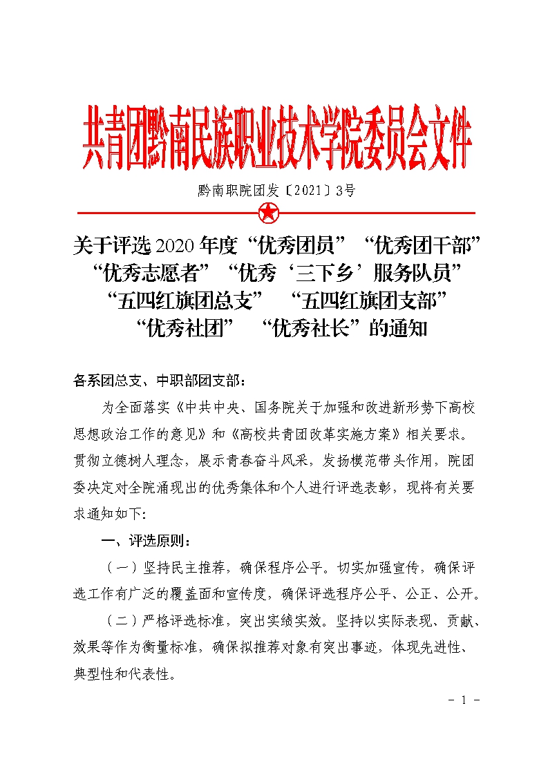 团发〔2021〕3号文件:文件关于开展2020年度黔南职院“五四评优”的通知