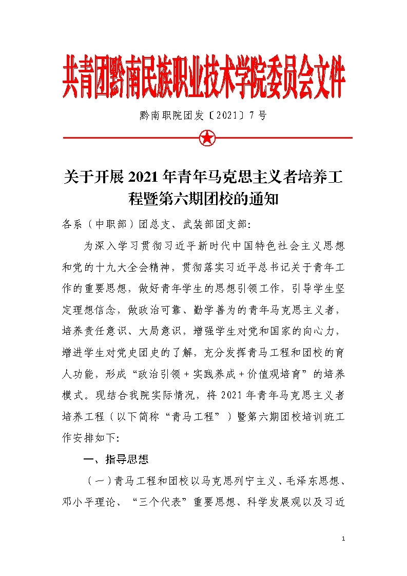团发7号文件:关于开展2021年青年马克思主义者培养工程暨第六期团校的通知