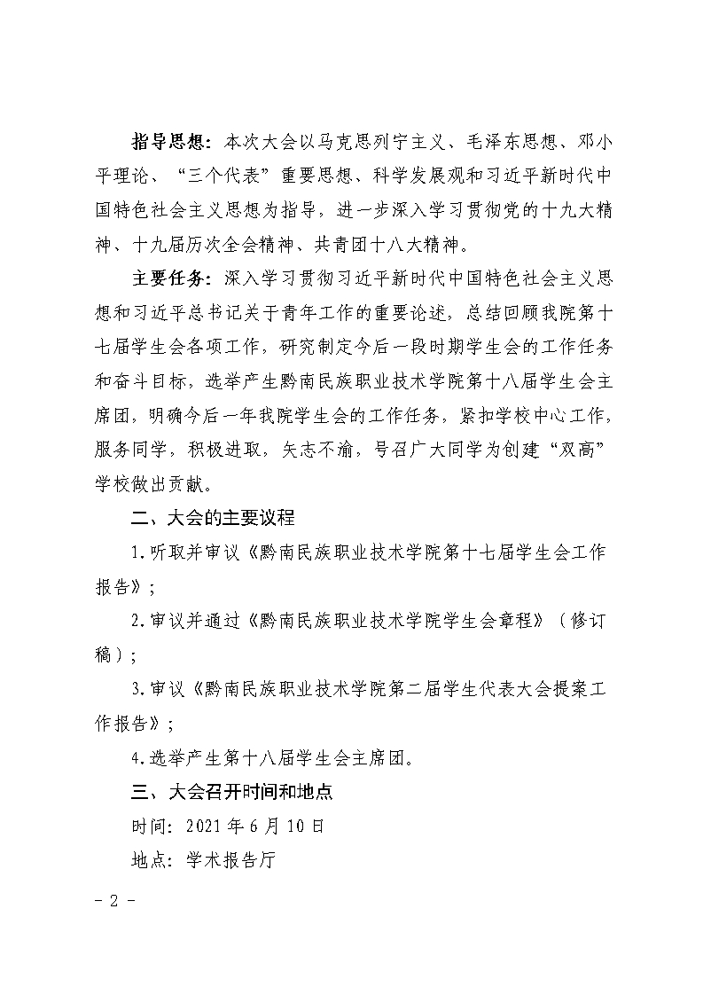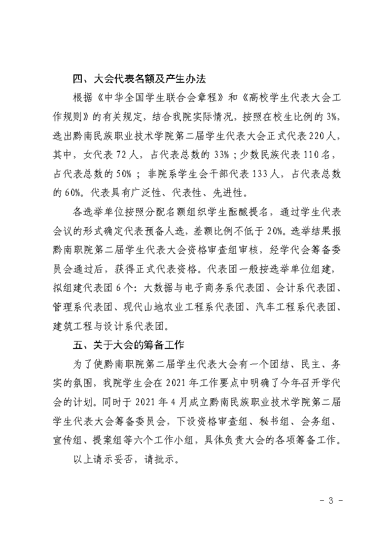 团发〔2021〕16号文件:关于召开黔南民族职业学院学生会第二次学代会的请示(省学联)