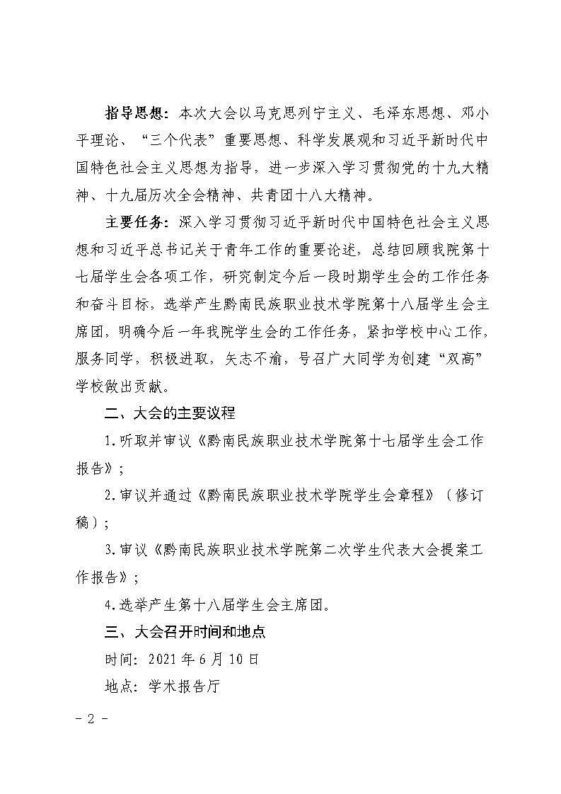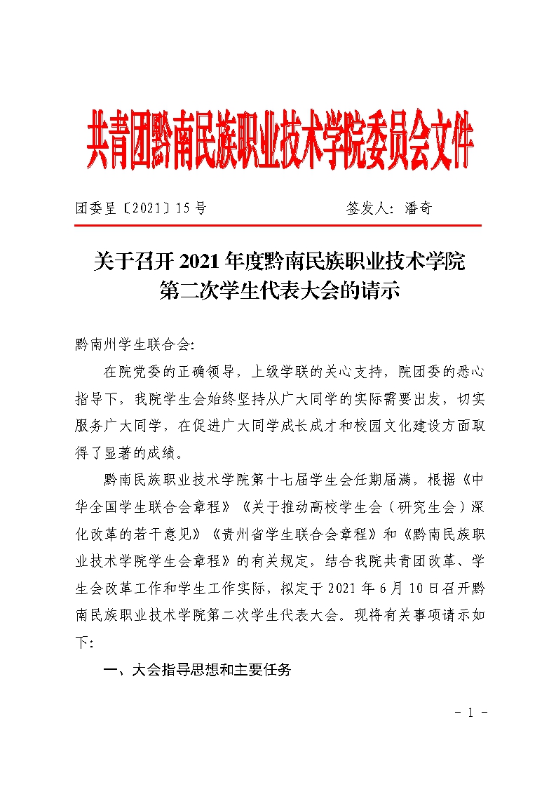 团发〔2021〕15号文件:关于召开黔南民族职业学院学生会第二次学代会的请示(州学联)