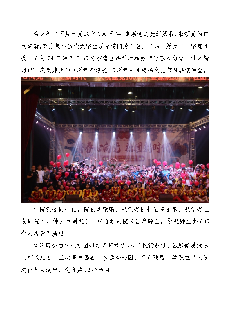 “青春心向党·社团新时代”庆祝建党100周年暨建院20周年社团精品文化节目展演