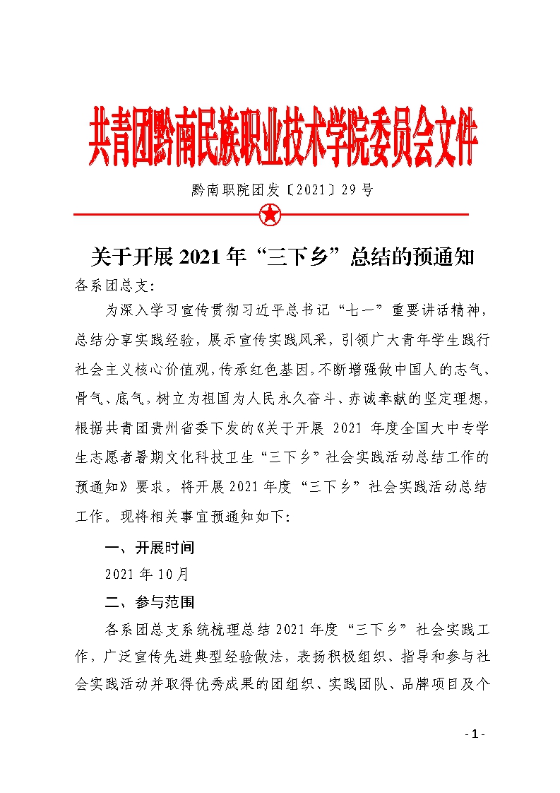 团发〔2021〕29号:关于开展2021年“三下乡”总结的预通知
