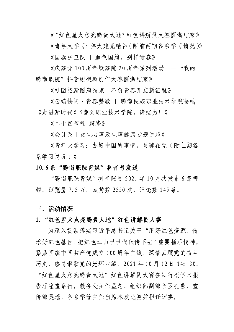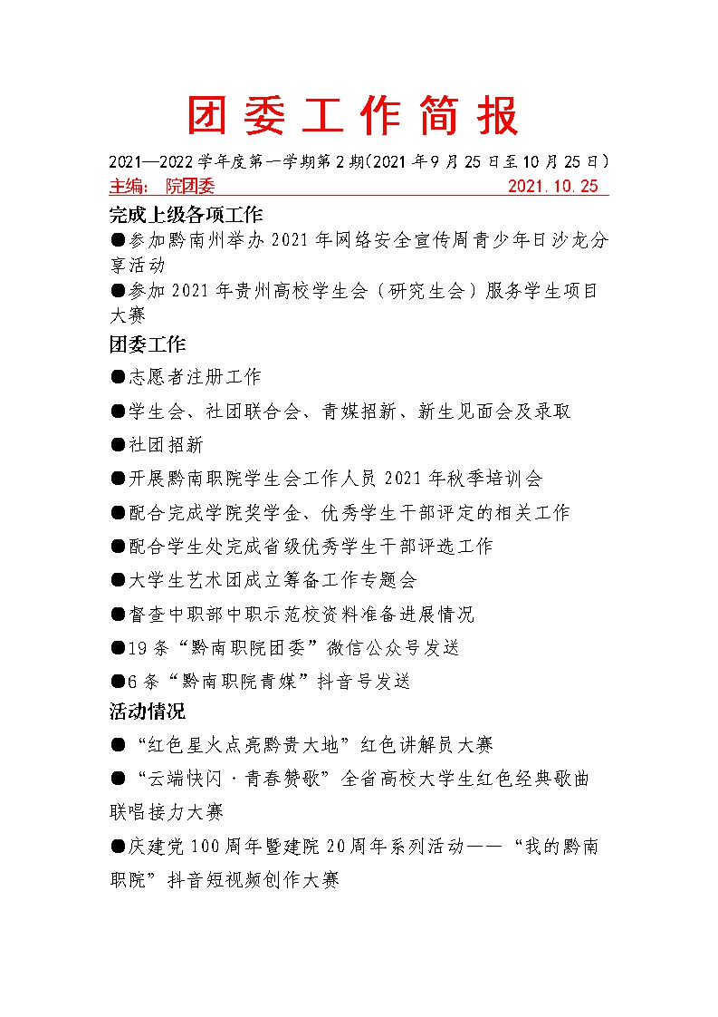 2021年10月工作简报