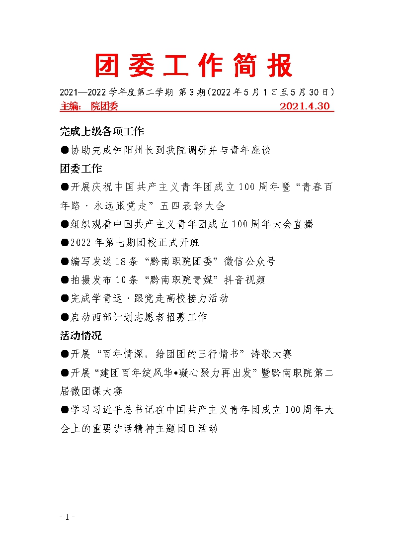 2022年4月工作简报...