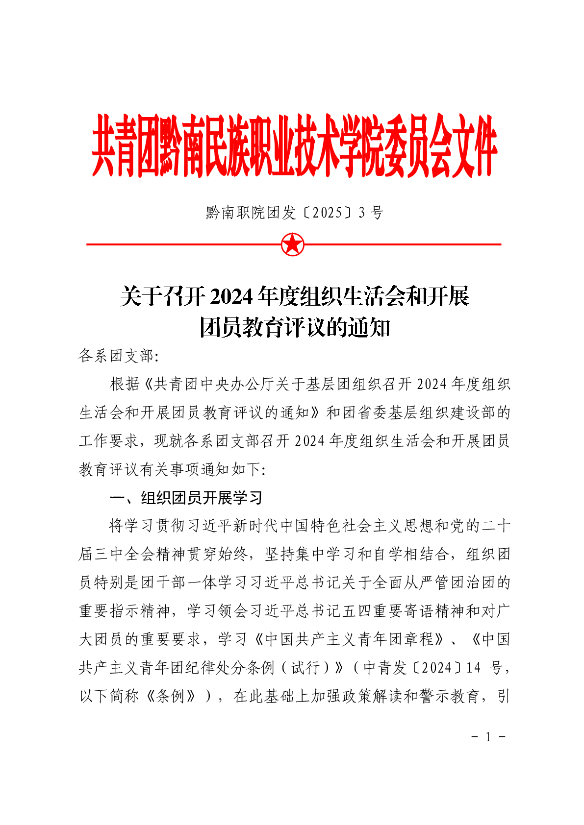 团发〔2025〕3号文件:关于召开2024年度组织生活会和开展团员教育评议的通知