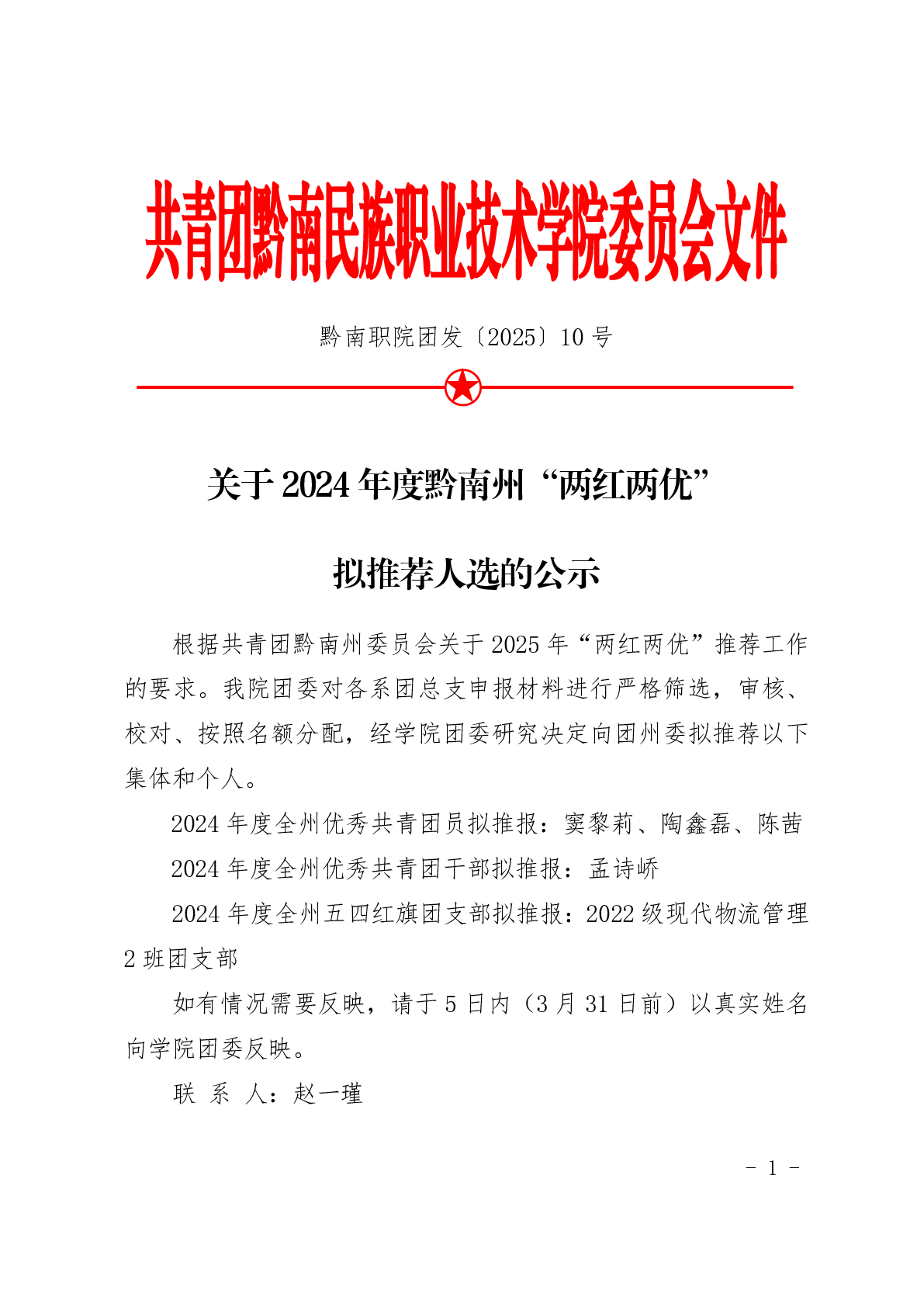 团发〔2025〕10号文件:申报黔南州两红两优拟推报人选公示