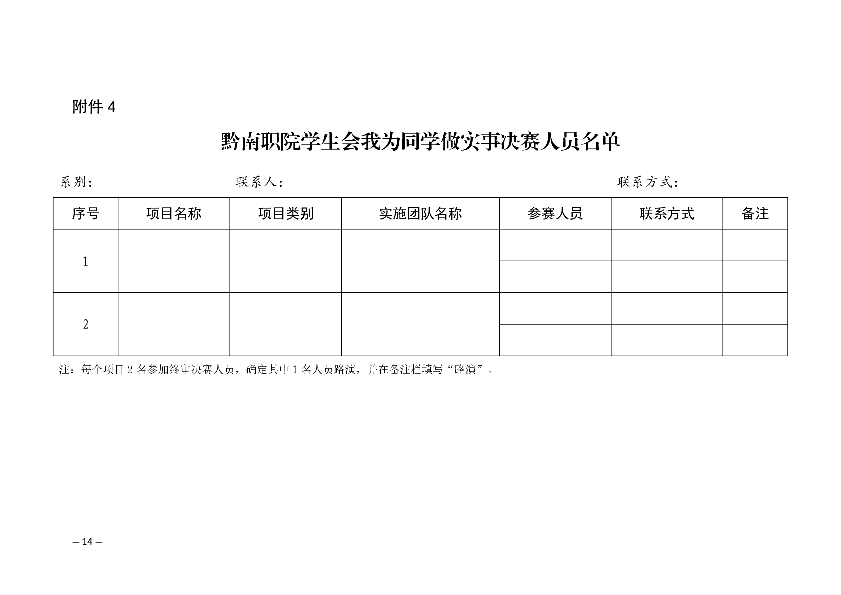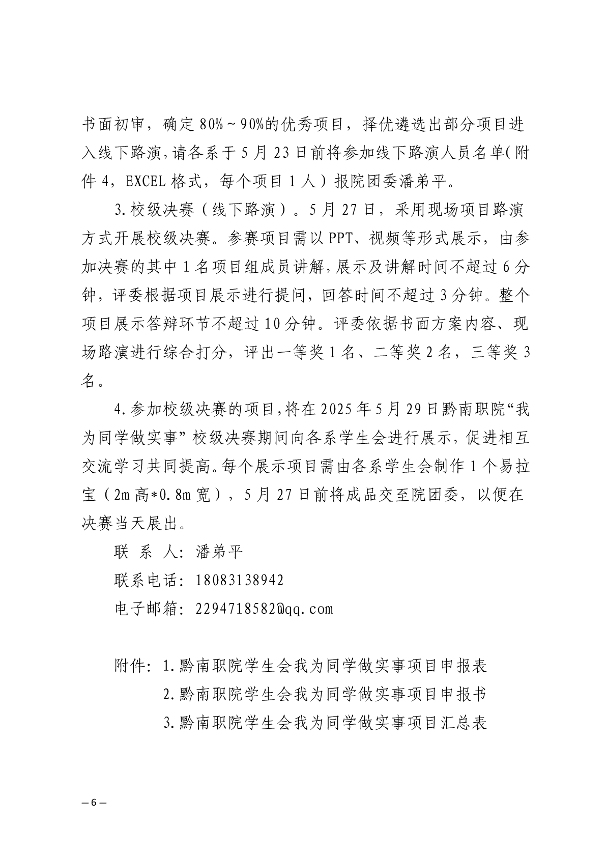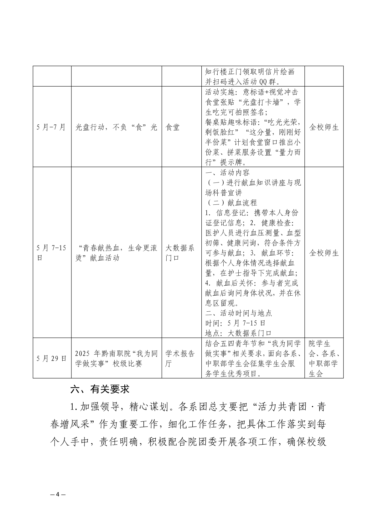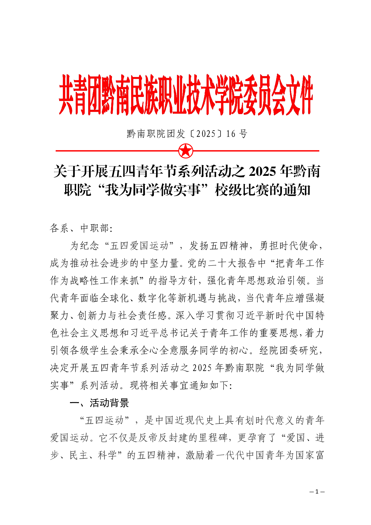 团发〔2025〕16号文件:关于开展五四青年节系列活动之2025年黔南职院“我为同学做实事”校级比赛的通知