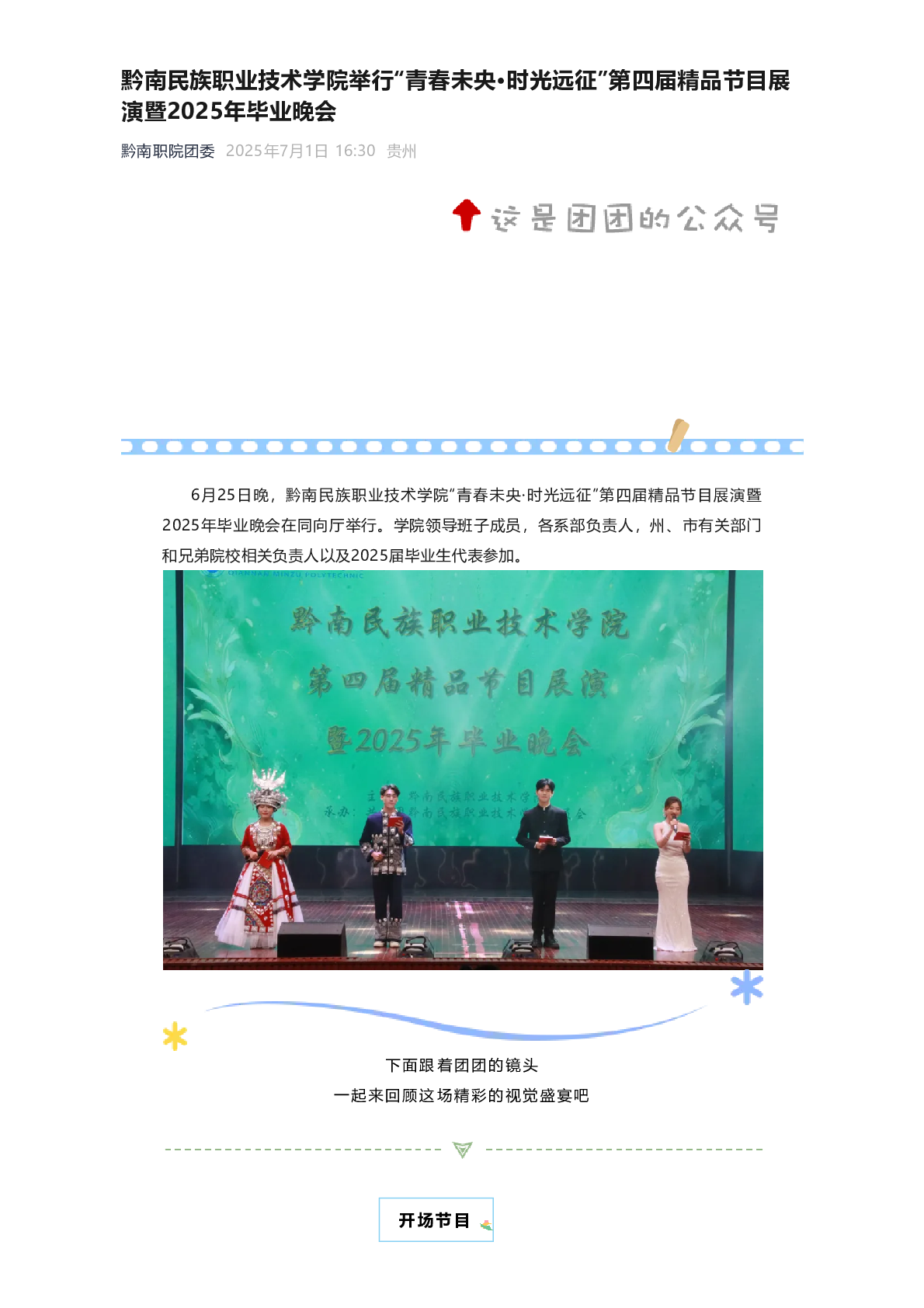黔南民族职业技术学院举行“青春未央·时光远征”第四届精品节目展演暨2025年毕业晚会