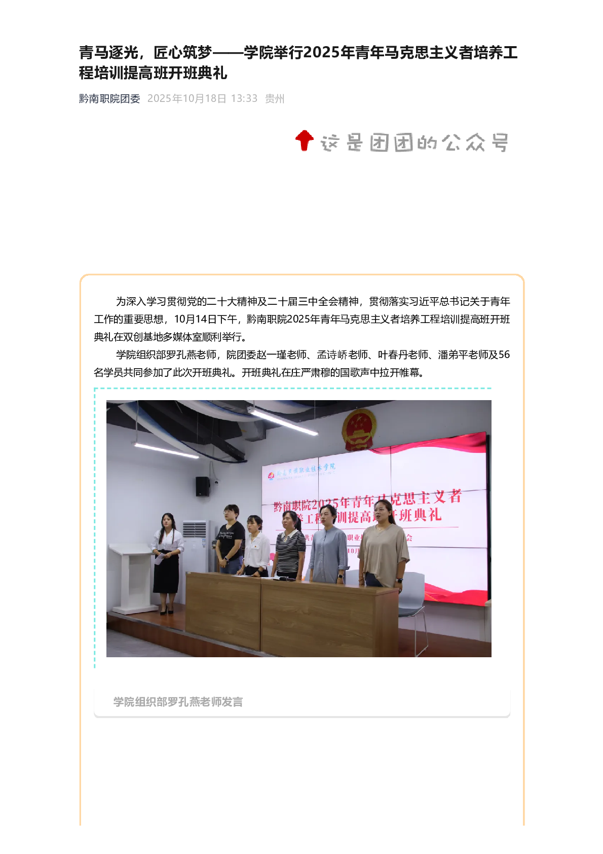 青马逐光,匠心筑梦——学院举行2025年青年马克思主义者培养工程培训提高班开班典礼