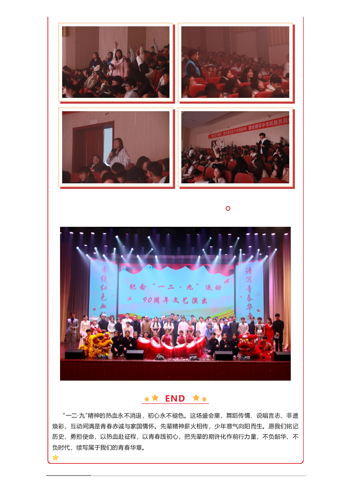 “赓续红色血脉·谱写青春华章”纪念“一二·九”运动90周年文艺演出圆满结束!