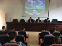 2017年5月8日,学生处、教务处组织本年度组建的男、女足球队队员在中区学术报告厅举行开训动员会,会议由学生处史黔匀处长主持,学院饶辉院长参加了会议并讲话。饶院长从中国足球的发展历程中举例要求我们的队员要有创新精神,要培养好的体育礼仪和团队意识,要通过训练锻炼自己的意志,培养自身勇敢、坚毅、豁达的人生态度。最后,饶院长希望通过足球队的训练,带动学院良好的运动氛围,在去年的良好基础上,再今年的省赛中能够取得更好的成绩。同时,要以训练、竞赛为杠杆,推进我院足球教育教学改革,提升足球教学水平,踢出职院的精气神。教务处余玲副处长、伍明老师参加了会议。