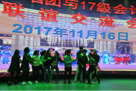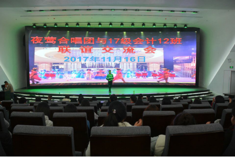 ★11月16日晚7:00,为增进友谊,促进交流学习,黔南职院夜莺合唱团与2017级会计12班开展了一场别开生面的联谊交流会,联谊会在知行楼一楼数字报告厅举行。合唱团成员与会计12班全体同学共约120人参加了此次联谊会。