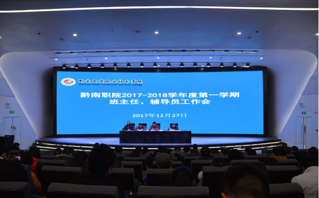 大会主要围绕如何做好我院学生管理工作来进行。潘奇处长首先汇报了本学期学生管理工作的开展情况。主要从制度建设、学生管理、活动开展、迎新工作、服务学生、宿舍管理等方面谈了本学期学生工作取得的进展以及目前存在的主要问题,同时提出今后工作思路及学生管理的发展方向。韦副书记在会上指出了班主任、辅导员工作中需要改进的地方,从强化安全教育、抓好学生干部选拔使用、学好用好学院“1+3”管理文件等十二个方面提出了具体要求。最后,罗俊书记发表重要讲话,用“8个突破”阐述了学院在全体教职工努力下取得的工作成绩,对所有老师的辛勤付出表示肯定及鼓励。同时也指出学生管理工作永远在路上。他说,学生管理工作需要尽心尽责尽力,要把学院当做自己的家,塑造我们共同的精神家园。大家团结起来,营造一个爱校、爱岗、爱生、互爱的“命运共同体”,充分发扬我们已经形成的“艰苦奋斗、奋勇争先”、“把不可能变成可能”的黔南职院精神,用全新的面貌、团体的力量助推黔南职院明天的发展迈上新台阶。(徐发国)