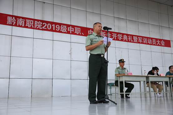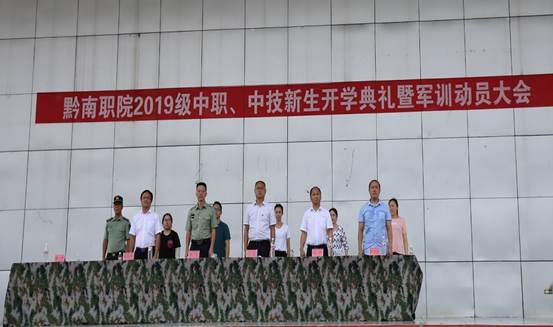 8月23日,我院举行2019级中职、中技新生开学典礼暨军训动员大会。院长饶辉,副书记韦永革,副院长王焱,学生处处长潘奇,中职部负责人王黔,中职部分管负责人喻再富出席动员大会。2019级中职、中技新生和承训教官、中职部辅导员等参加大会。大会由潘奇处长主持。