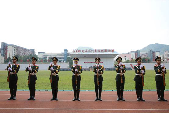 新生精神昂扬,生气勃勃,用如雷般的掌声拉开仪式序幕。在嘹亮的国歌声中,新生站得笔挺,用最好的姿态迎接军训。升国旗仪式礼毕,饶辉院长代表学院向新生表示欢迎,对全体教官冒着酷暑承担学校军训任务表示感谢。