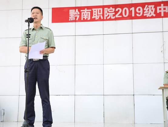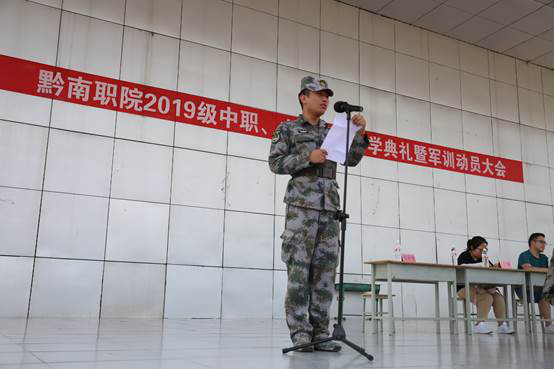 军训教官陈瑶代表全体教官表决心,表示将以饱满的热情、昂扬的斗志积极投入军训工作中。
