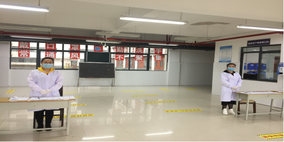 会后,宿管办以学生宿舍躬行楼为试点,组织工作人员逐一落实各项工作安排。一是在大门处安排《新型冠状肺炎防疫宣传知识》、《学生宿舍疫情防控工作要求》、《新冠肺炎疫情学生宿舍管理防控工作明白图》宣传展架,宣传防疫知识同时,告知学生宿舍防控措施;设置“体温复查点”和“体温异常观察点”及测量体温等待间隔线。